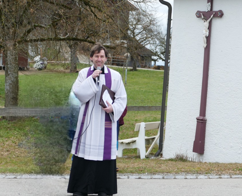 Nach den Stationen am Wegkreuz bei Berg, dem Bodenseekreuz und der Kapelle Oberhäuser war die letzte Station wie der Beginn wieder am Kirchplatz. Hier lasen Kinder Fürbitten für die Ortsbauernschaft vor. Sie baten Gott um Geduld und Verständnis füreinander, um Gesundheit für Körper und Seele und um Ruhe und ein zufriedenes Herz im Alltag. Nach einem abschließenden Gebet und dem Segen durch Pfarrer Wißmiller gab es im Bräustüble Meckatz in gemütlicher Runde eine verdiente Stärkung.